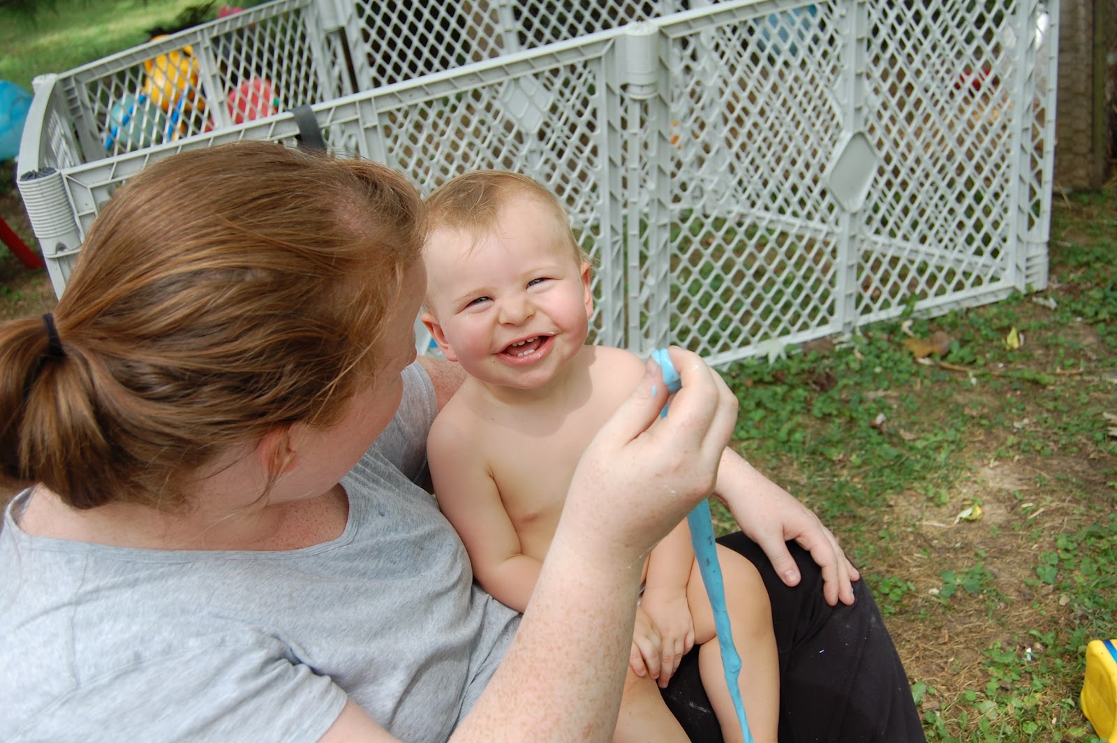 It was too hot for much physical activity by late afternoon, so we had a bubble blowing contest. It was hysterical to see all the tricks the little one's tried to figure out bubble blowing.