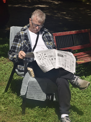 We needed to pick up books at the library, get some coffee at the grocery, along with some paper plates and forks because I'm bringing cinnamon rolls to his caretakers and whoever is waiting out this surgery with me. I bought myself a shirt that says, "I bake and I know things." I thought that described me fairly well. We also shopped for a bird feeder for our upcoming porch vacation.